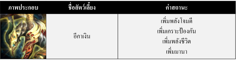 และจะปรับใช้ค่าสถานะสัตว์เลี้ยงเพิ่มขึ้นตามค่าพลังป้องกันของตัวละครที่เพิ่มขึ้น
